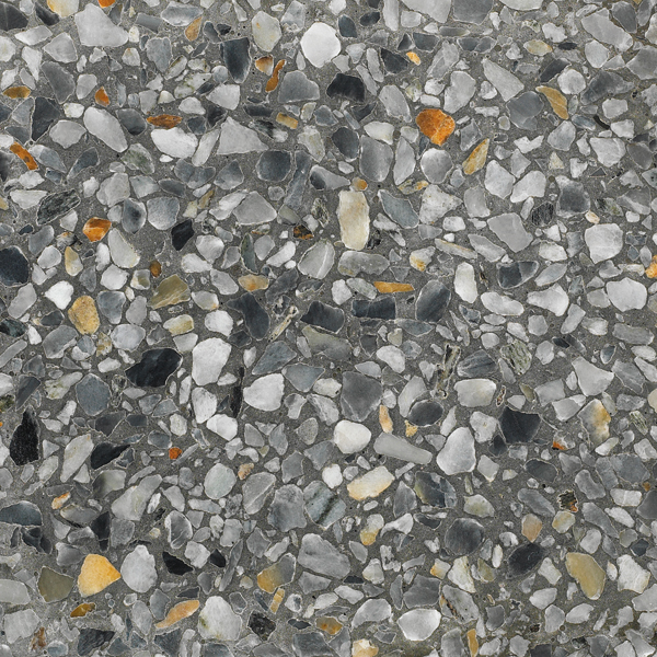 Støbt af naturmaterialer: 30 - 40 mm. Herunder få eksempler på nogle af Terrazzo farverne